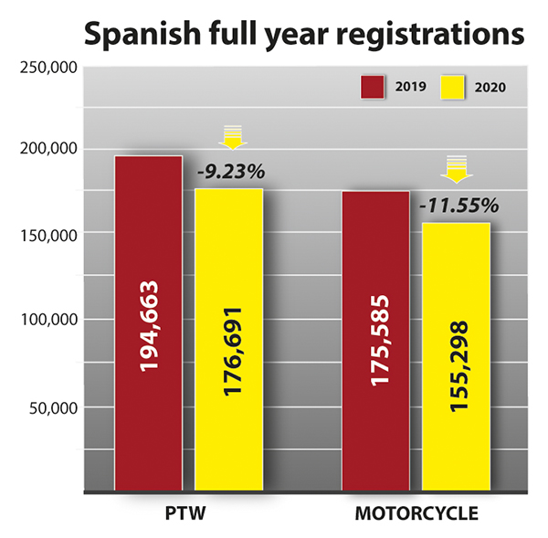Spain: Total PTW registrations -9.23% for 2020 full year